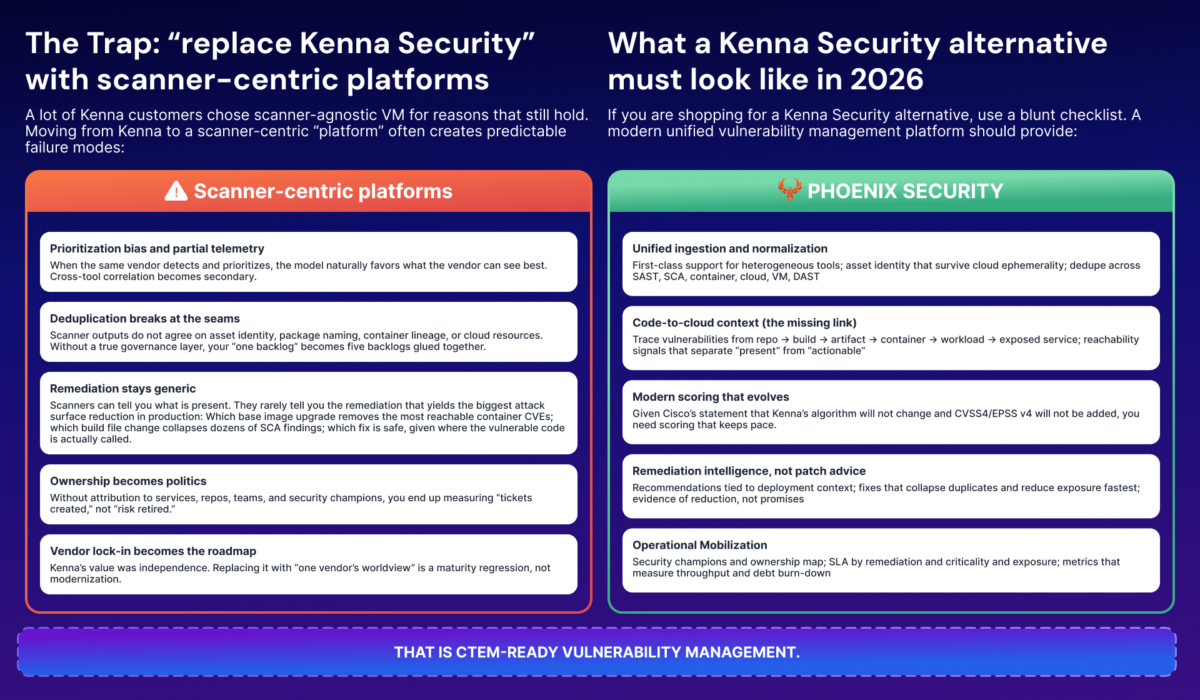 The trap: “replace Kenna Security” with scanner-centric platforms