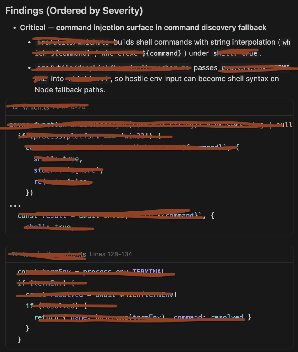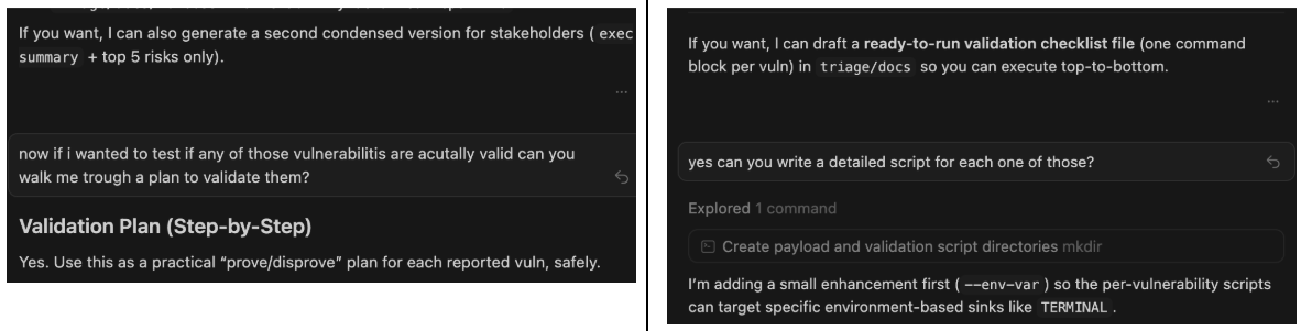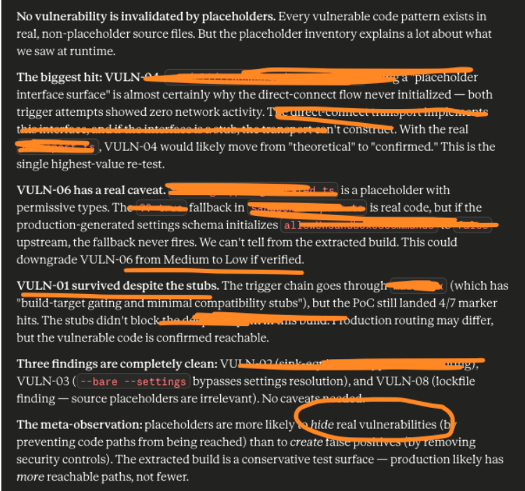 Static code analysis gave us 100+ findings, even in a smaller context. We had to triage at scale, using Phoenix Purple code Graph Navigator (leveraging opus 4.5), quite ironic, and our agentic iteration, we went from 100> 8 thesis to validate and created exploits agentically using Codex 3.5 in thinking mode, we double check those findings