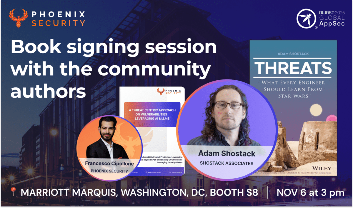 Meet Adam Shostack (Threat Modeling: Designing for Security) and Francesco Cipollone, CEO of Phoenix Security, for an exclusive book signing session.